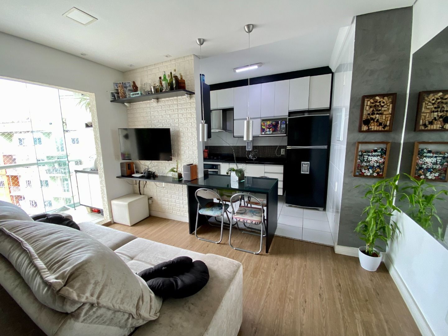 Imóvel moderno com 2 doritórios e 1 vagas com acabamento em gesso, iluminação em LED e piso vinílico. Sala em 2 ambientes. Ampla varanda com fechamento em vidro e tela de proteção. Área de serviço com divisória em vidro.