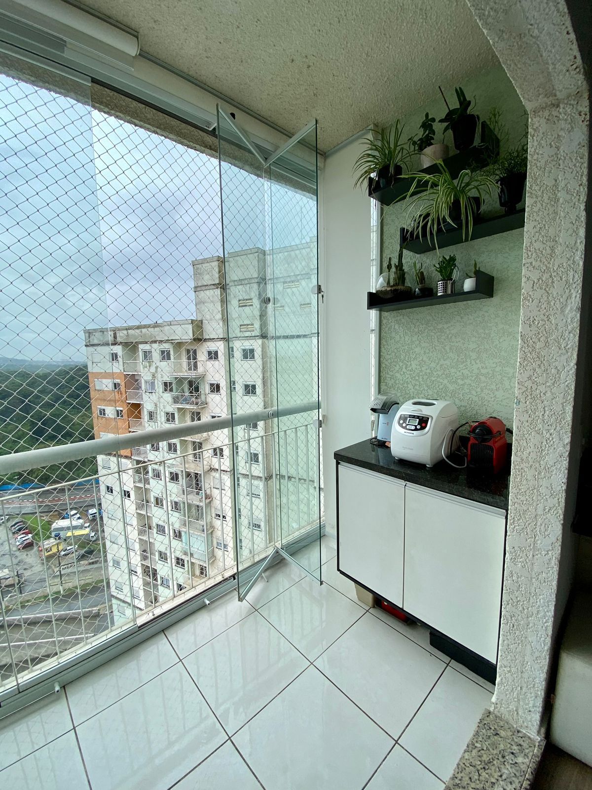 Sacada fechada com vidro.