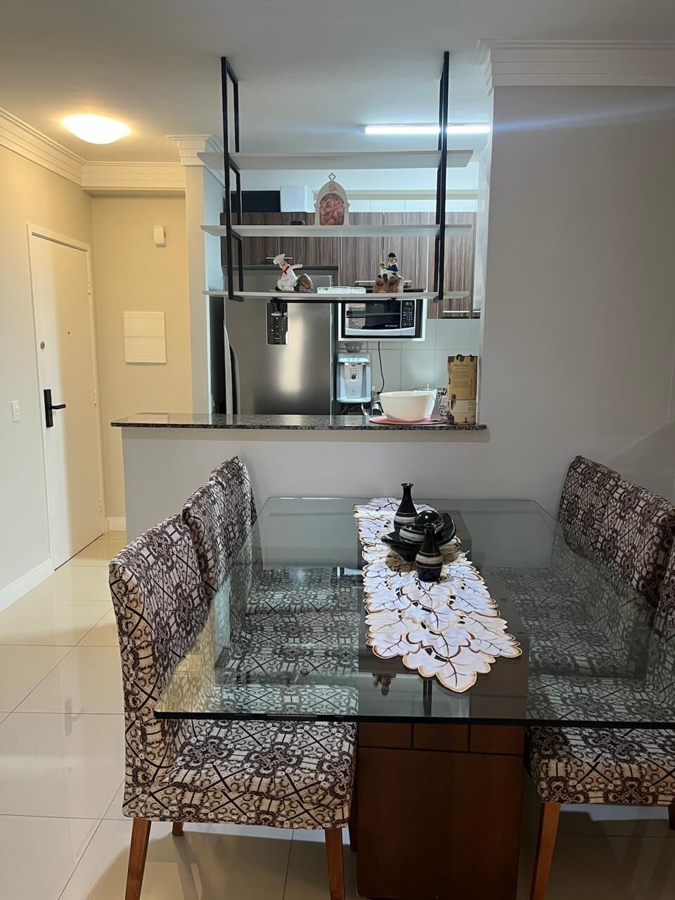 Sala em 2 ambientes, integrada à sacada com piso porcelanato