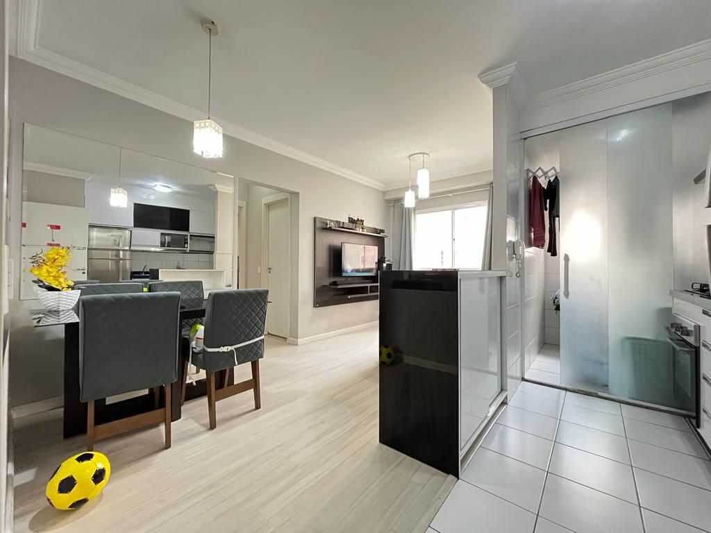 O apartamento conta com 2 dormitórios, sendo quarto com armário planejado, sala para 2 ambientes, cozinha com planejados, além de área de serviço funcional. Possui 1 vaga de garagem e oferece ótima iluminação natural e ventilação, garantindo ambientes agradáveis.