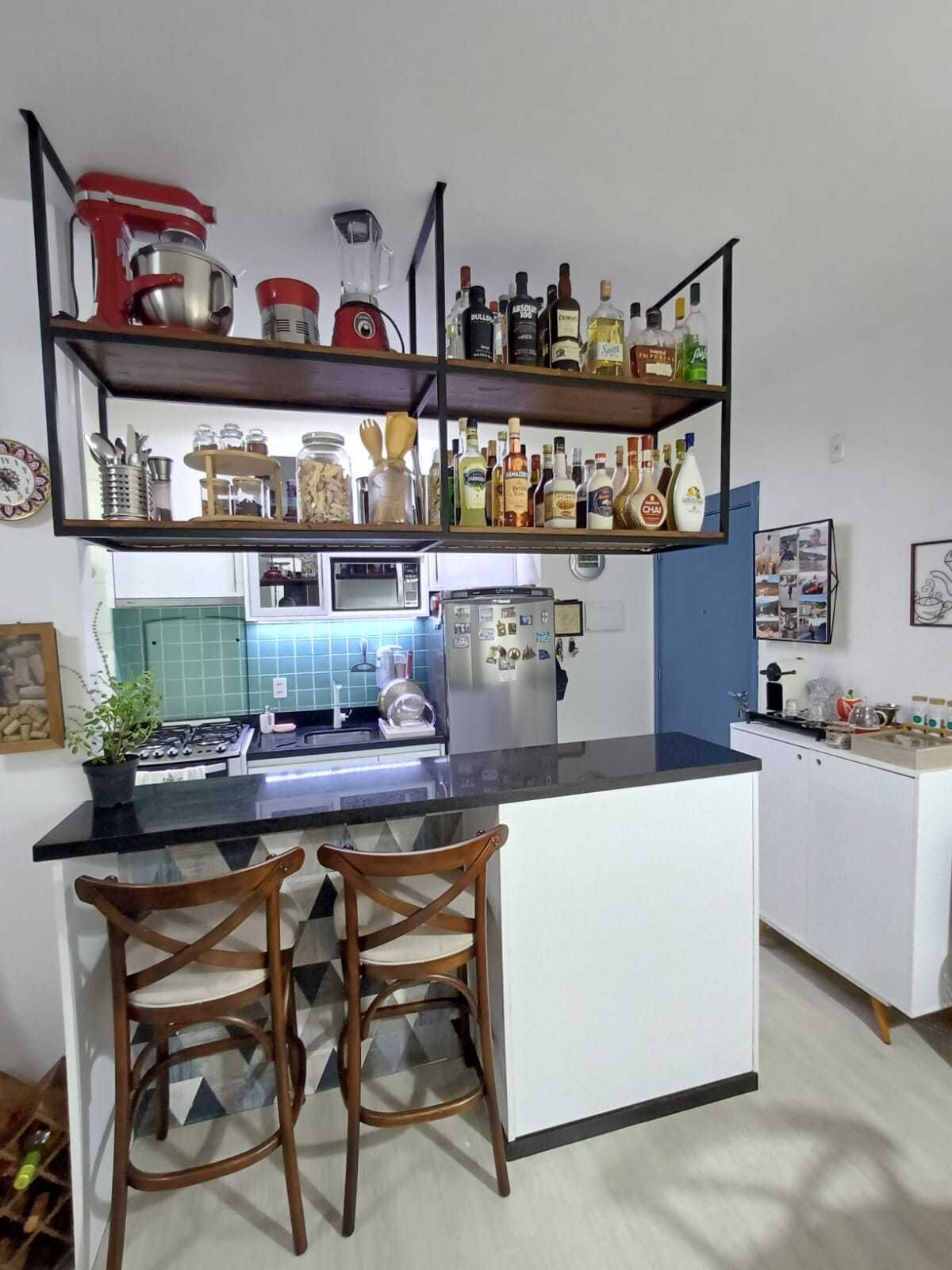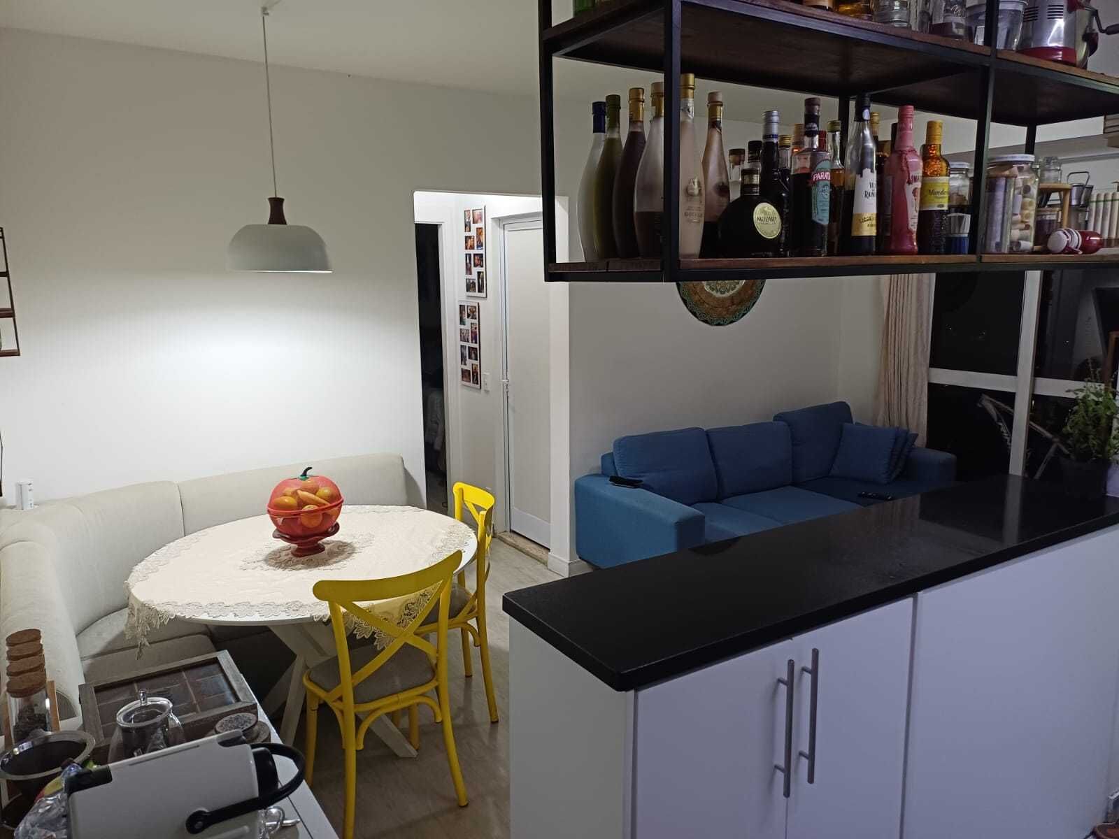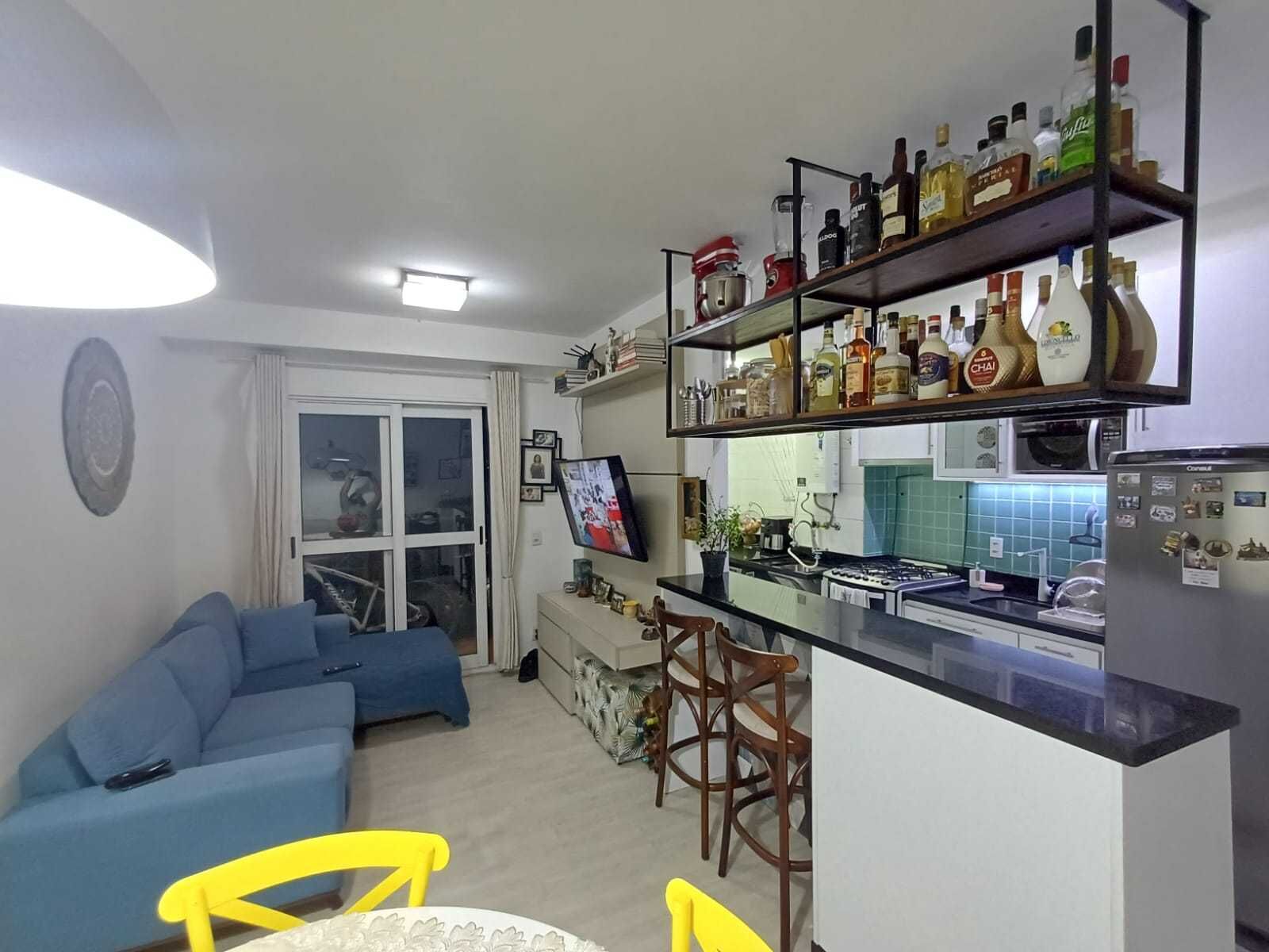 O imóvel conta com 2 dormitórios, sala de estar e jantar integradas, cozinha funcional, área de serviço, 1 banheiro, varanda e 1 vaga de garagem coberta. Possui móveis planejados na sala e cozinha, com projeto clean e atemporal, balcão e bancadas em pedra São Gabriel, lavanderia bem equipada e acabamento que dispensa reformas — pronto para morar.