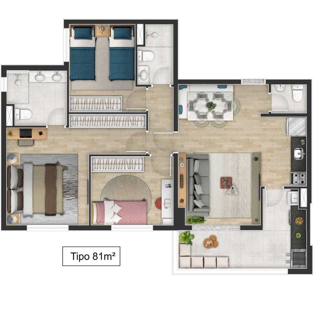 Apartamento de 81 m² à venda na Aldeia de Barueri, localizado em um dos bairros mais valorizados e concorridos da cidade. O imóvel conta com 3 dormitórios, sendo 1 suíte, sala ampla para dois ambientes com sacada, cozinha funcional, área de serviço independente e 2 vagas de garagem, além de estar em andar alto, garantindo ótima ventilação, iluminação natural e vista privilegiada.