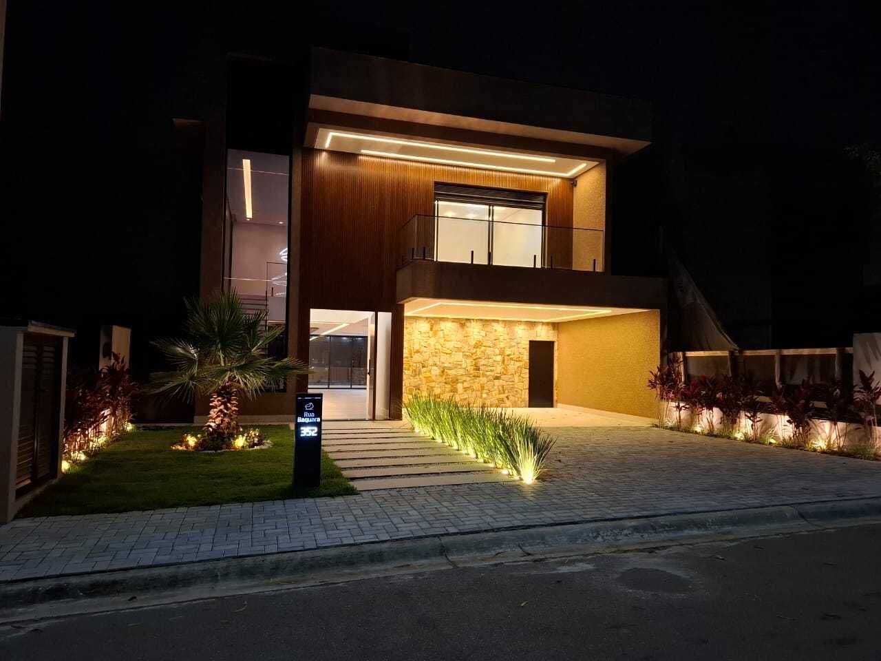 A residência conta com ar-condicionado inverter em todas as suítes e 2 aparelhos K7 de 24.000 BTU no térreo, além de projeto luminotécnico completo e automação residencial integrada à Alexa, permitindo controlar iluminação, ar-condicionado, persianas e TV. Possui ainda Wi-Fi distribuído por toda a casa e sistema de energia solar instalado, com infraestrutura pronta para boiler.