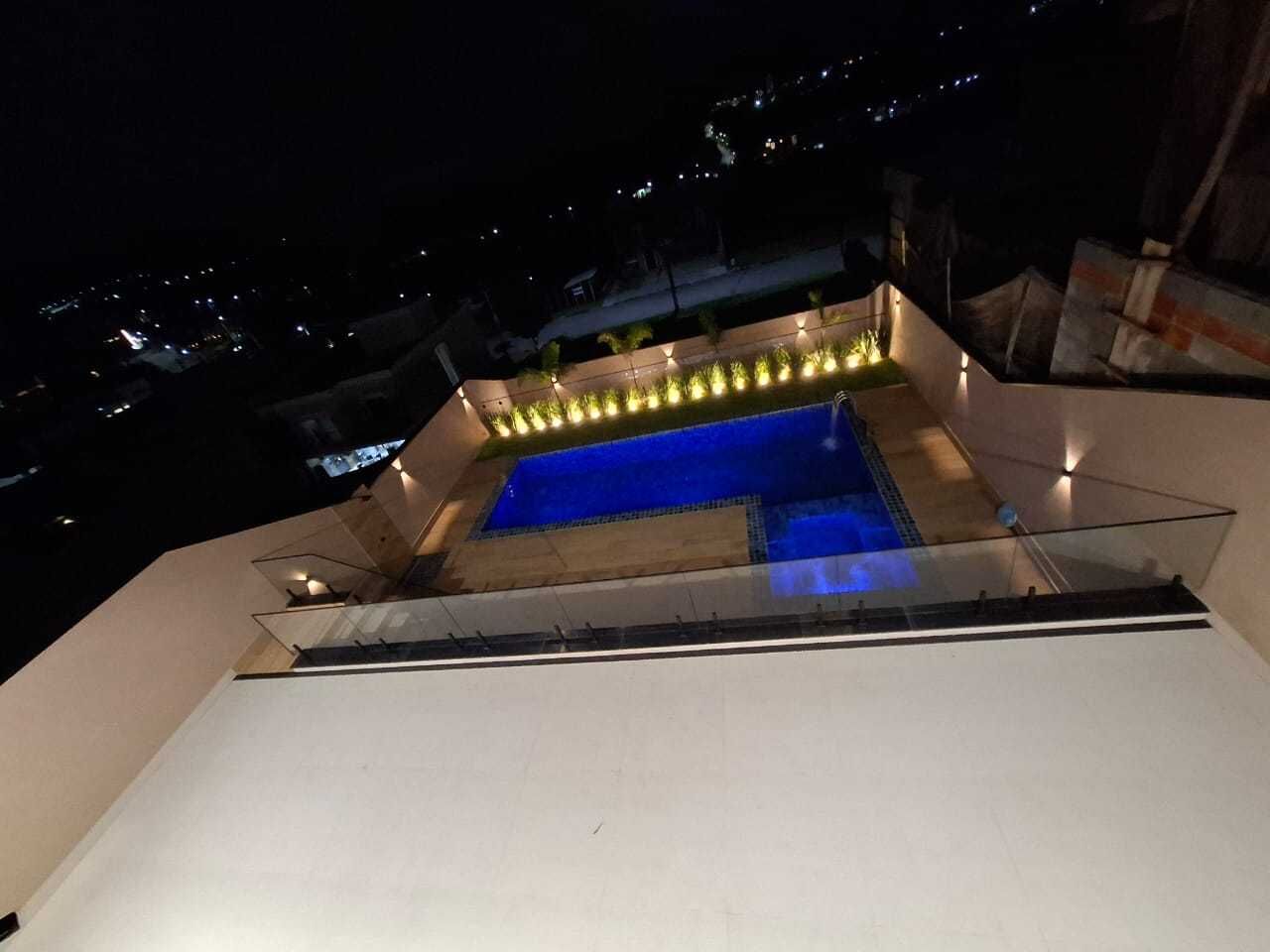 A área de lazer inclui piscina de 32,98 m² com 48 mil litros, hidromassagem para até 9 pessoas, iluminação controlada por aplicativo e Alexa e aquecimento por trocador de calor. O imóvel possui 6 banheiros (4 das suítes, lavabo e banheiro da área da piscina).